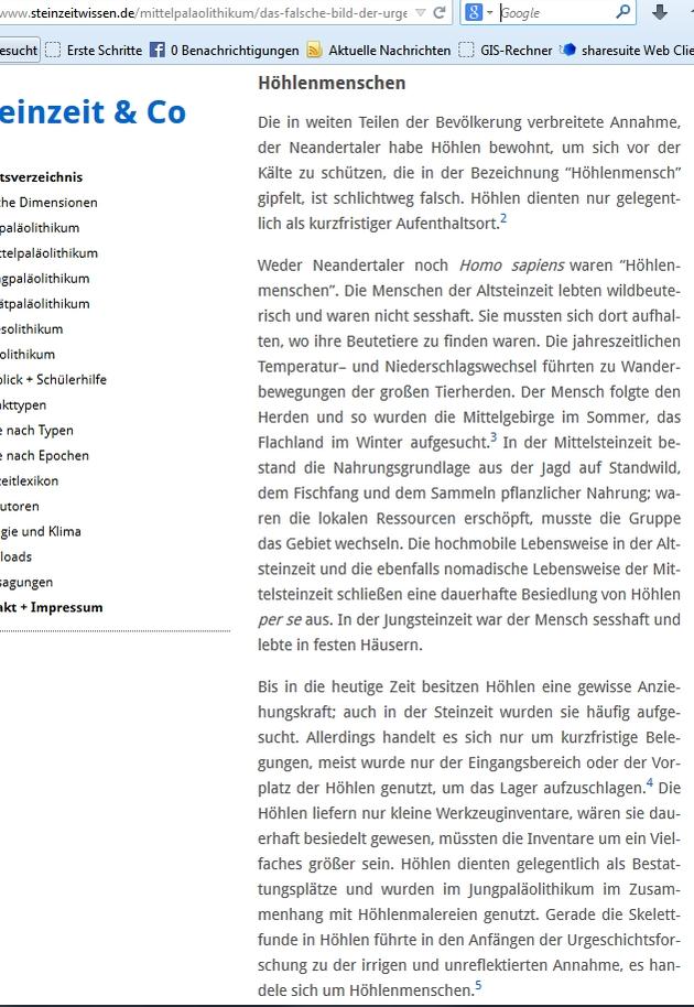 Das die Neandertaler nicht ausschließlich in Höhlen gelebt haben, glaube ich auch, nur spricht die lange Besiedelung der Höhlen und Abris für eine intensive längere Nutzung, nicht blos als Wochenendhäuschen heutiger Zeit in der Eifel oder in Tirol=).