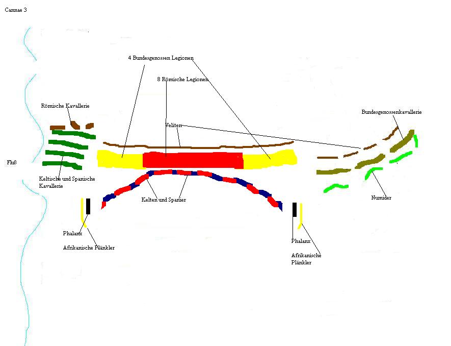 Zwei Details sollte man noch ausführen : mMn war nicht der Stoß der Kavallerie in den Rücken der Legionen entscheidend, sondern der zeitgleiche Stoß der Phalanx in die Flanke.