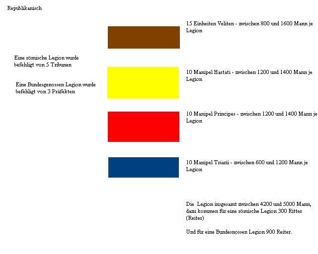 Die Republik hatte daher von diesen um die 100 Legionen meist um die 20 im Feld und ergänzte aus dem Rest diese 20 fortlaufend.