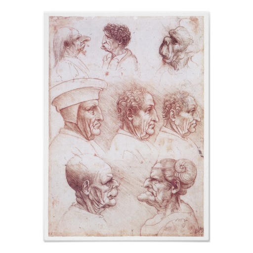 Ja das sind da Vincis "Groteske Köpfe."Mich erinnert das eher an die Skizzenbücher von Leonardo da Vinci.