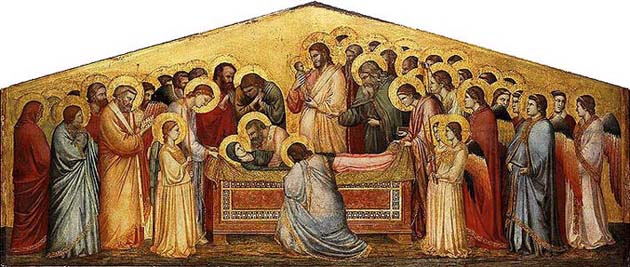 Das ein Giotto? Na da bin ich aber daneben gelegen! Aber mich hat der für Giotto so ungewöhnliche goldene Hintergrund auf eine andere Fährte gelockt (Giotto bevorzugt ja sonst den "realistischen" Hintergrund).Barbarelli schrieb:Ich lasse es mal trotzdem gelten. Es handelt sich um "Der Tod Mariae" von Giotto. Sie wird bereits von Ghiberti und Vasari als Werk Giottos genannt. Sie befindet sich in der Berliner Gemäldegalerie und ist eine von zwei Tafeln des Meisters, die dort aufbewahrt werden.