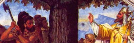 Man beachte und vergrößere dafür die Blätter des Baumes, die ihn verraten... quatsch, das historische Ereignis (Fällen der Donareiche von Fritzlar) ist bekannt bzw. sollte es sein...