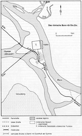 entlang der heutigen Kölnstraße (damals über eine Steinbrücke über die Gumme)http://www.av-rheinland.de/Das Romische Bonn.htm