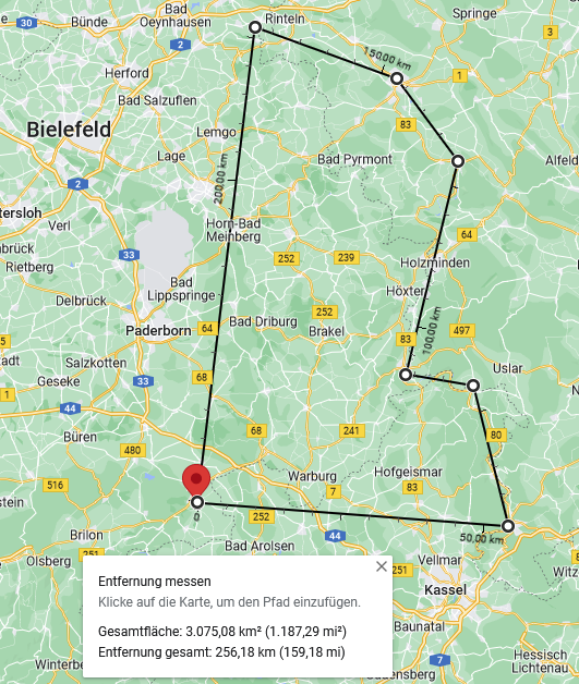 Zwischen Marsberg und der langen Weser ist ein ziemlich großes Gebiet von etwa 3000 km²: