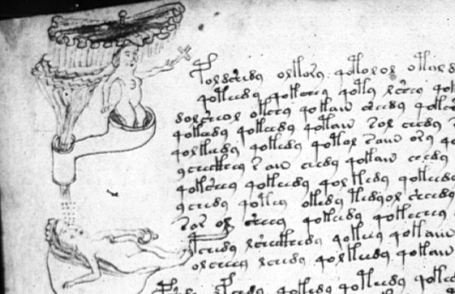 Auf den ersten zwei Seiten taucht das qok- z. B. überhaupt nicht auf, dann haben wir extreme Cluster z. B. auf Seite 75r wie: "qoky pchedy keedy qokedy qokedy qokedy qokedy qokain" oder "qokedy dy sheety qokedy qokchdy qokechdy lol qokeedy qokeedy qokedy qokedy qokeedy" - kannst ja gern mal Deine eigene Transkription und einen Übersetzungsversuch zu diesen Stellen bringen.