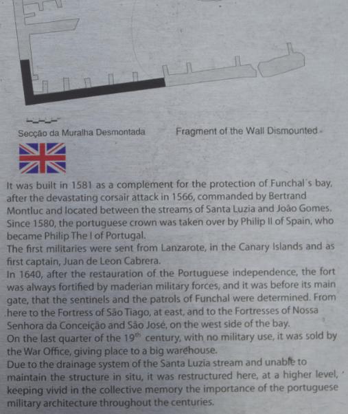 Das im späten 16. Jh. errichtete Fort ist eines der für diese Zeit - 16.-17. Jh. - ungewöhnlich zahlreichen detachierten Forts des Gouvernerssitzes bzw. der Provinzhauptstadt. Funchal verfügte ehemals über eine nicht sonderlich stark ausgebaute Enceinte (Stadtumwallung), dafür aber über mehrere flankierende Forts, mehrere Batterien (Geschützstellungen) und eine mächtige Zitadelle. Mit Ausnahme einer im frühen 19. Jh. errichteten Artilleriestellung stammen alle diese Fortifikationen aus der Barockzeit.