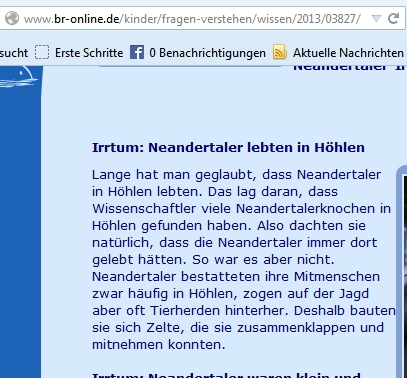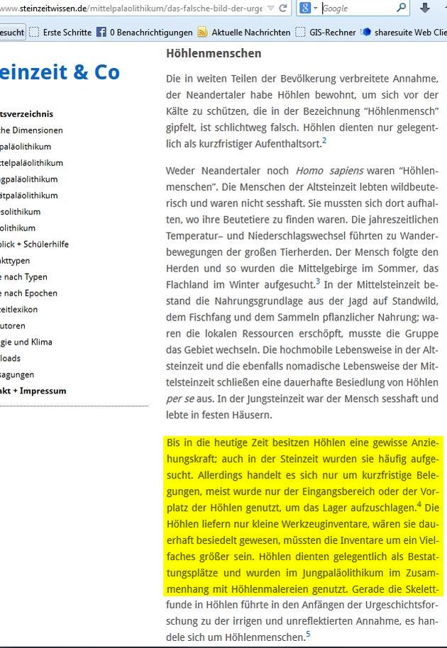 Das die Neandertaler nicht ausschließlich in Höhlen gelebt haben, glaube ich auch, nur spricht die lange Besiedelung der Höhlen und Abris für eine intensive längere Nutzung, nicht blos als Wochenendhäuschen heutiger Zeit in der Eifel oder in Tirol=).