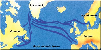 D.h., in der in Frage stehenden Zeit sind West-Eurasier durchaus aufs Meer hinausgefahren. Natürlich nicht aufs Geratewohl, sondern zum Fischen. Immer schön den (Sardinen-)Schwärmen nach. Und die finden sich v.a. über Tiefengewässern, weil dort das Nahrungsangebot (Plankton, Krill) am besten ist. Mischzonen von kalter und warmer Strömung machen sich da auch gut.
