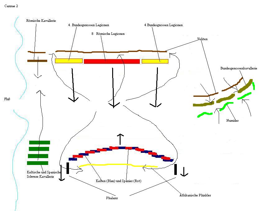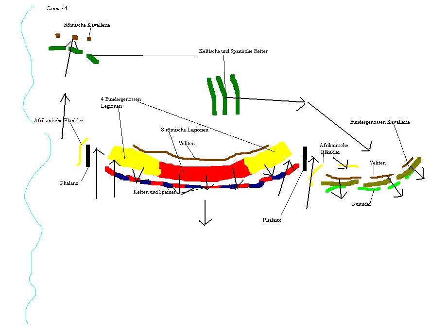 Zwei Details sollte man noch ausführen : mMn war nicht der Stoß der Kavallerie in den Rücken der Legionen entscheidend, sondern der zeitgleiche Stoß der Phalanx in die Flanke.