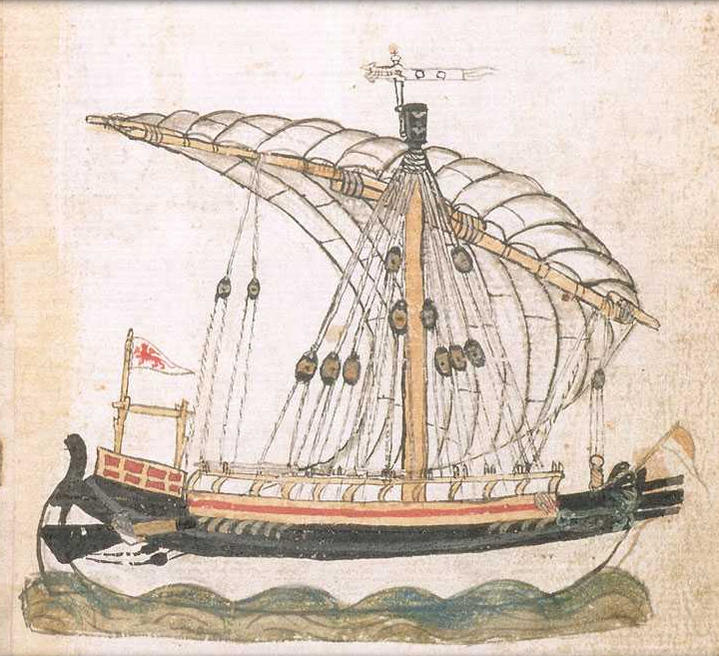 Im 15. Jahrhundert verschwinden die Zinnen allerdings wieder, was ich dem Größenwachstum der Schiffe zuschreibe. Auf der noch späteren Mary Rose waren Zinnen natürlich längst abgeschafft, bzw. sie waren von den hohen Kastellen zur niederen Kuhlreling mittschiffs gewandert, wo sie in modifizierter Form immer noch dazu dienten, Bogenschützen Deckung zu bieten. Auch Bdaians Beispiele des gleichzeitigen Gebrauchs von Bogen und Armbrüsten zeigen ja bereits spätere, sehr hochbordige französische oder flämische Holke und englische Karracken,deren Personenstaffage man natürlich nicht zum Maßstab nehmen darf.