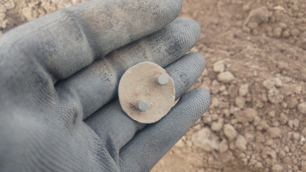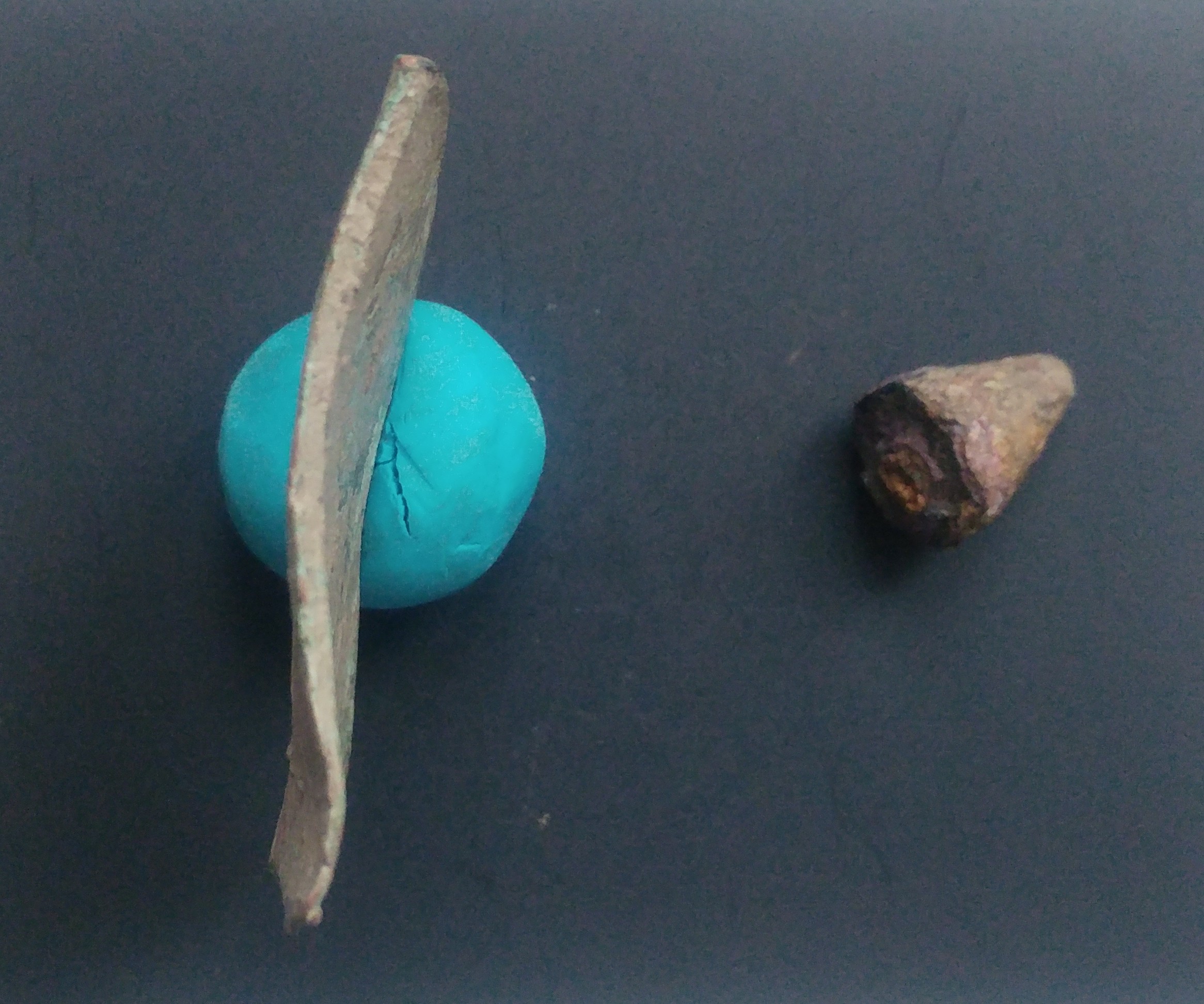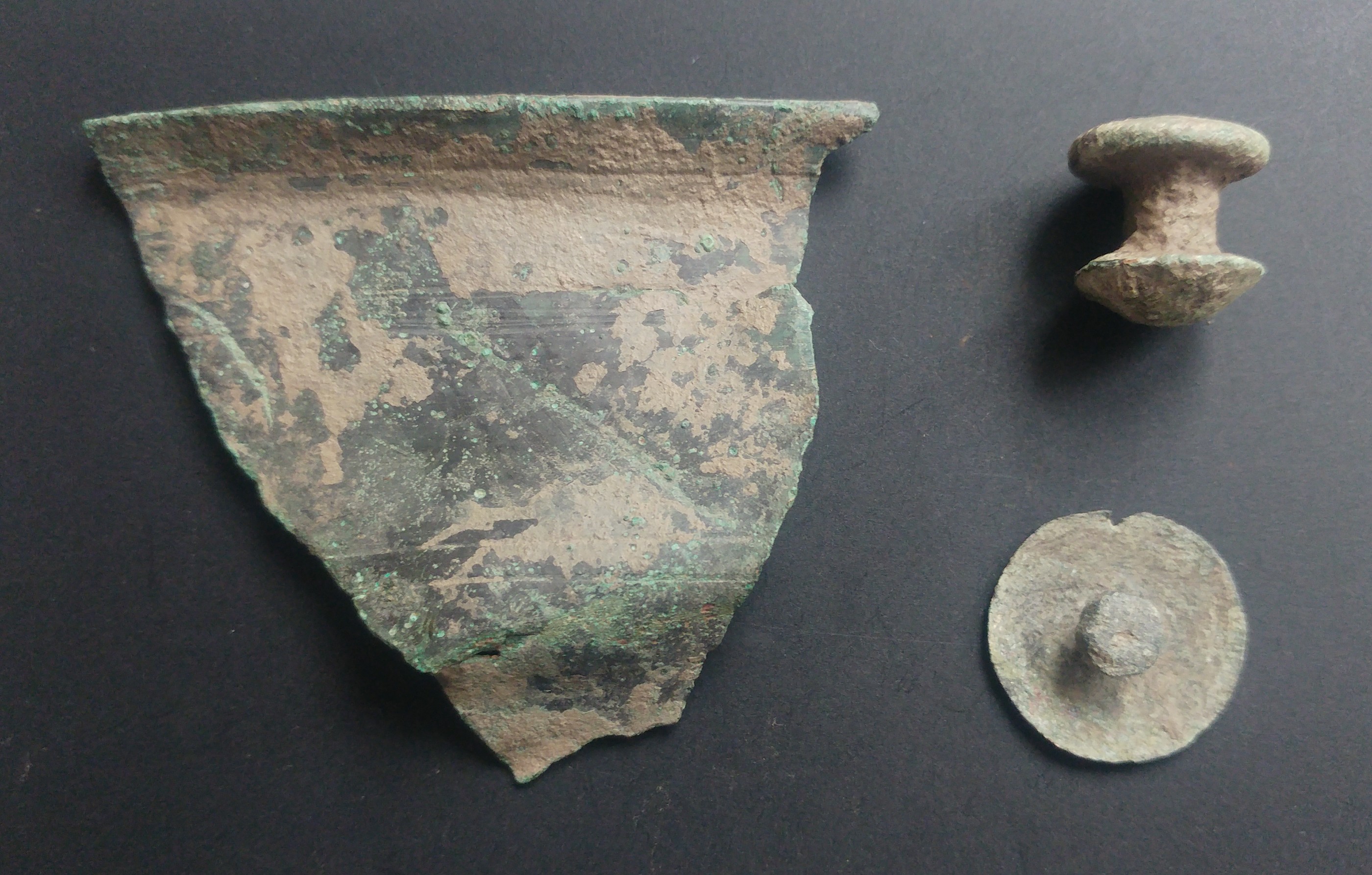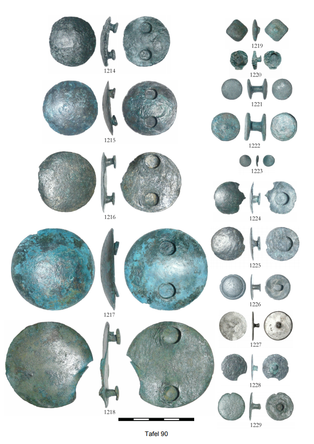 hier Fragmente vom Nackenschutz mit 2 Nietköpfen vom Harzhorn (siehe Anhang aus Wiki Harzhornereignis).