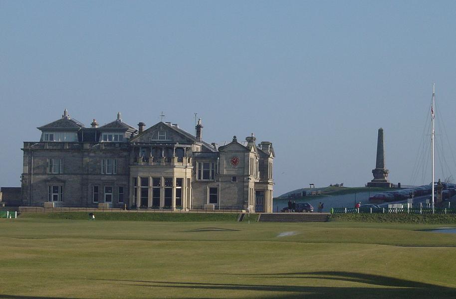 - einem englischen Rasen, bei dem es sich möglicherweise um einen Golfplatz handelt,