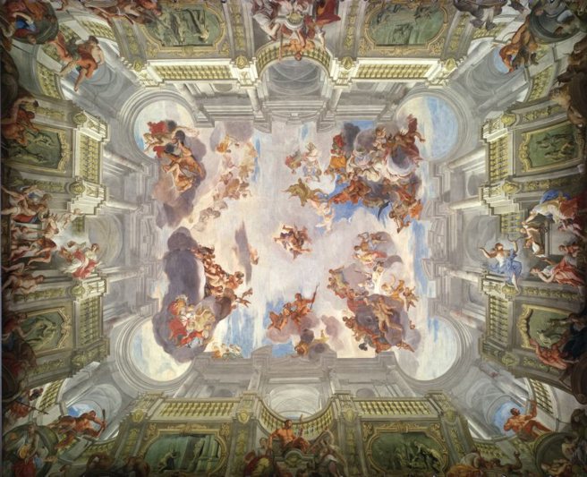 Rottmayr hat zwar im selben Gebäude, in dem das gesuchte Fresko den Festsaal scmückt, ebenfalls freskiert, gesucht hab ich ihn aber nicht.Lukrezia Borgia schrieb:Ich schmeiße mal Johann Michael Rottmayr ins Rennen.