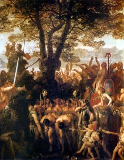 Edit: Äh, Moment! Die beiden, denen die Order "Bück Dich!" erging, beugen sich unter ein Joch - dann sind das die Soldaten des Gaius Pontius nach der Schlacht bei den kaudinischen Pässen.