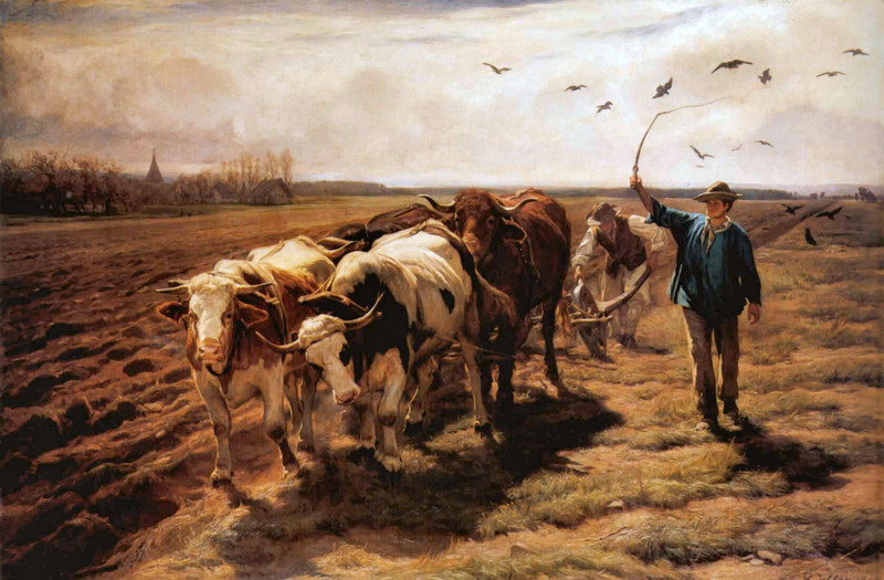 Diesmal ist’s ein Bild mit Ochsen. Der Maler ist aber wegen eines Pferdebildes berühmt. Das Bild zählt zu den bekanntesten Bildern der Schweiz.
