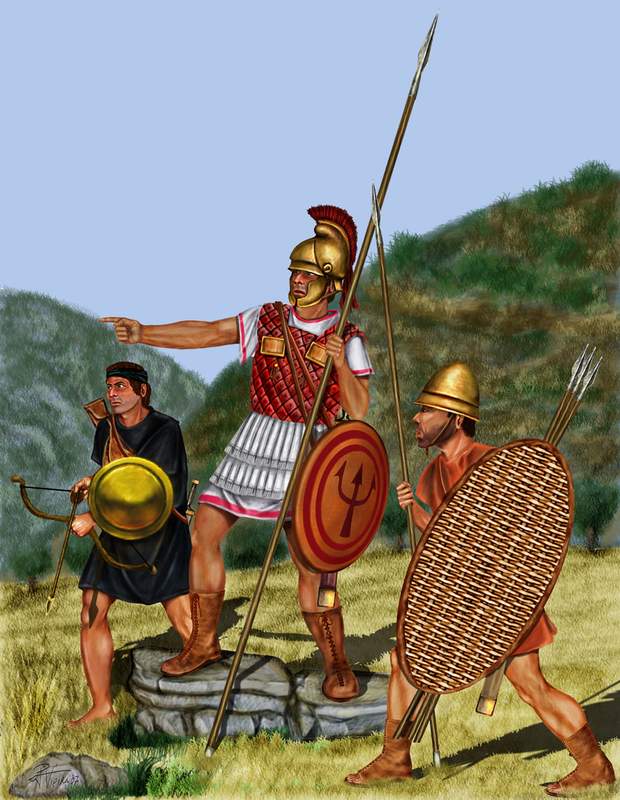Der Schild wurde kleiner. Vielleicht, weil für nicht bestens geschulte Kämpfer eine Kampf mit großem Schild und zweihändig geführter Lanze zu kompliziert war; vielleicht hätten die Hopliten auch weiterhin den Speer nicht doppelhändig gefasst, wenn sie immer noch die Möglichkeit hatten, sich hinter ihrem großen Schild einigermaßen sicher zu fühlen. Dafür wurden, als Ausgleich, die Speere länger, um den Verlust an Sicherheit zu kompensieren.