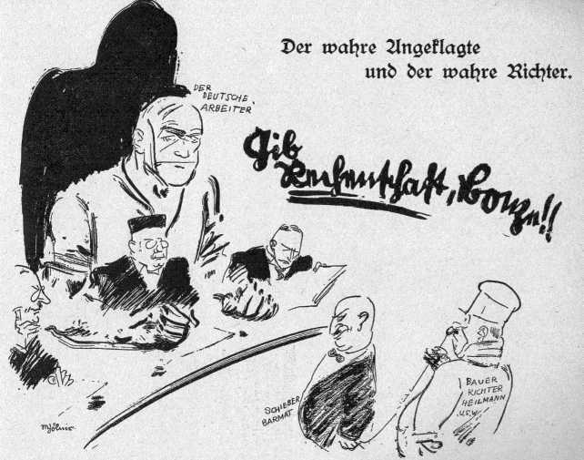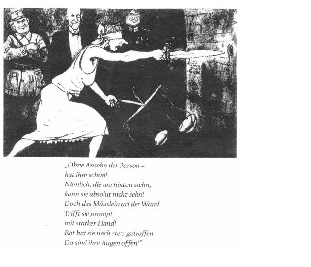 Was dir jedoch bei deiner Recherche zu der Karikatur helfen könnte, ist die Überschrift: "Es wird ohne Ansehen der Person vorgegangen."