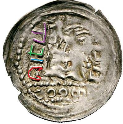 Auf dieser Münze von Miseko III. soll auf Hebräisch G-N-D stehen, was als Gnesen/Gniezno interpretiert wird.