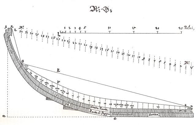 Hier ein paar Beispielszeichnungen aus Furttenbachs Architectura Navalis von 1629. Er beschreibt darin den Bau einer maltesischen Capitana(Kommandogaleere). Er beschreibt daRIN U: a: detailliert die Konstruktion der einzelnen Spanten ,wie und wo der Zirkel angesetzt werden muß.
