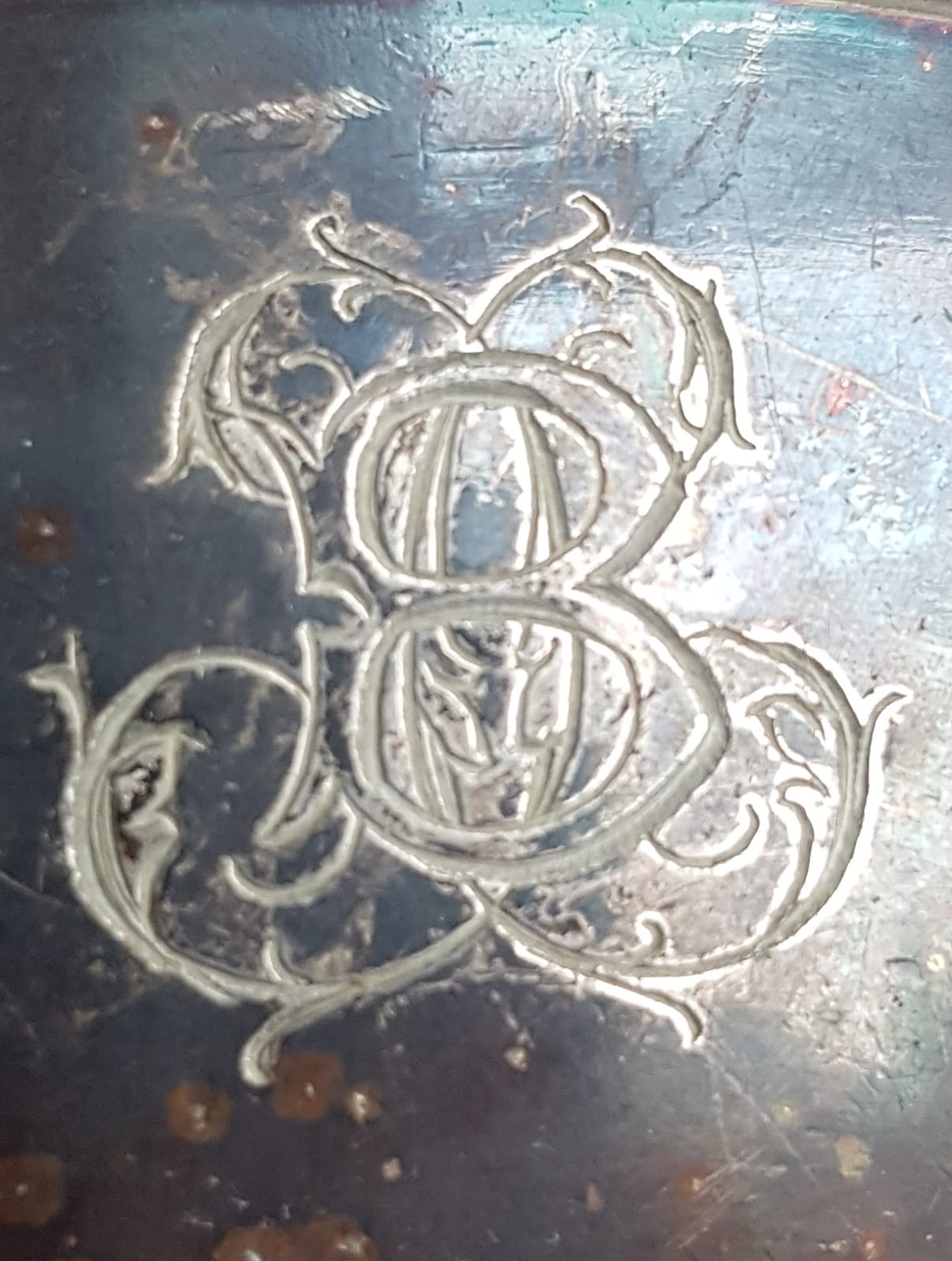 Bzgl. der Entstehungszeit des (Besitzer-)Monogramms würde ich aufgrund der Form des Buchstabens «B» vorsichtig auf die zweite Hälfte des 19. Jhs. tippen, zwischen 1850 und 1890 (Napoléon III oder etwas später). Wobei es, wie bereits von EQ erwähnt, nicht unbedingt um die Initiale des Erstbesitzers handeln muss.