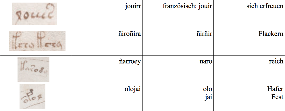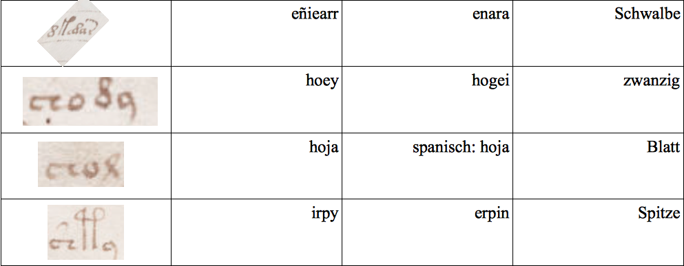 Was mich dabei stutzig macht ist, dass Arnold von Harff das lange "u" im Baskischen ja als "oy" (vgl. VMS: oeai (?)) schrieb.